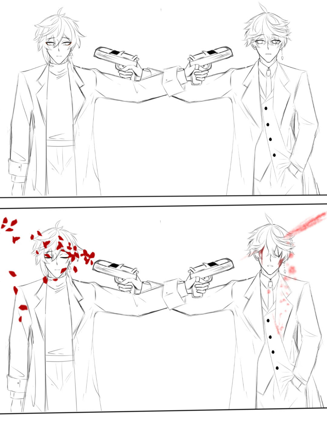 原本就是看到两个动作模板,觉得还不错。就想画画他俩···然后因为这个···重新画了两套衣服···前前后后差不多半个月,嗯,最终的结果就是这样